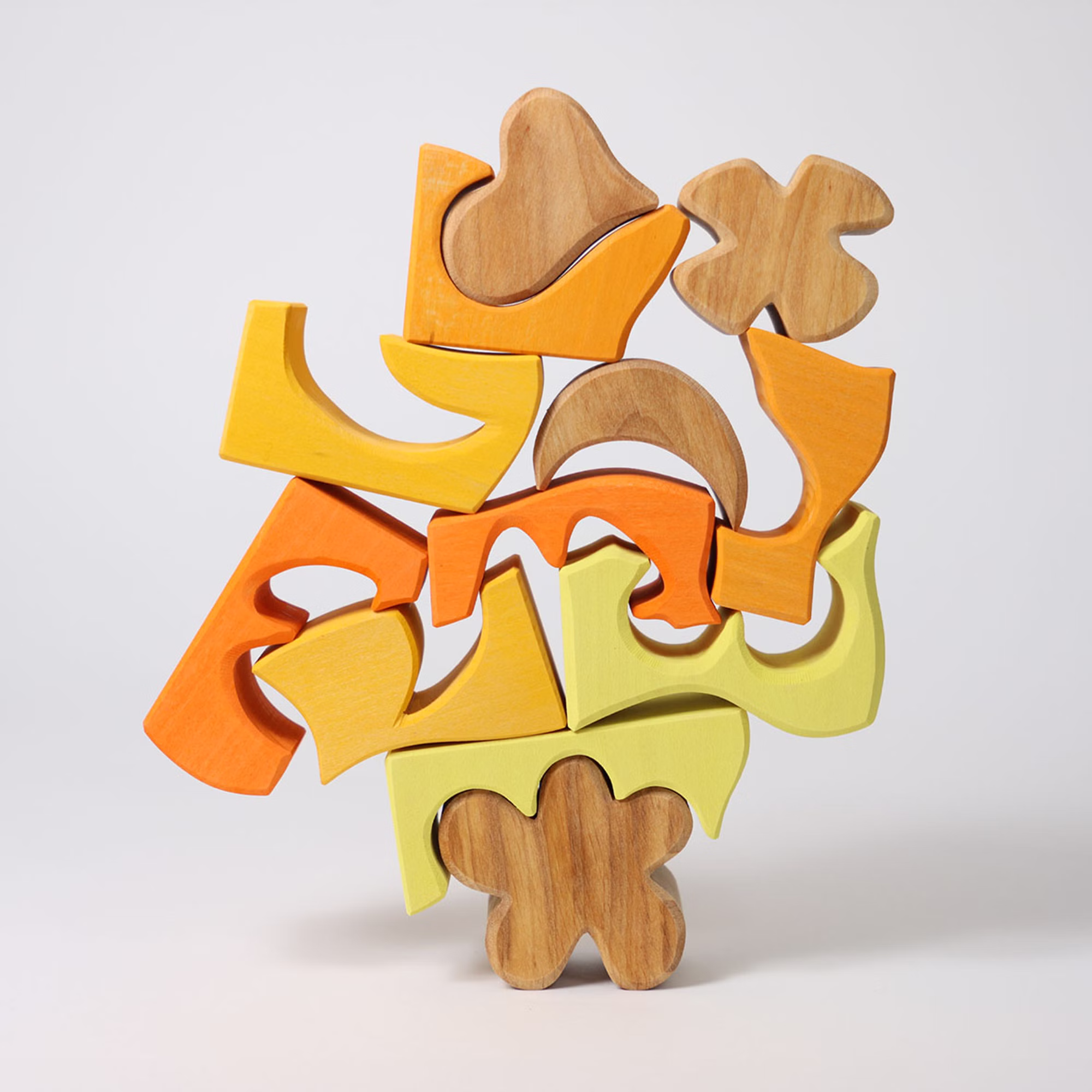 Außerhalb des Rahmens werden die organischen Bausteine zu kunstvollen und sommerlichen Blumenwiesen. Das Bauspiel ist Teil der Grimm´s vier Farb-Bauspiele. Mit ihren großen Teilen sind sie gemacht für die kleinsten Hände. Die Farbvarianten ermöglichen ein erstes Heranführen an die Primär- und Sekundärfarben und deren unterschiedliche Wirkung.