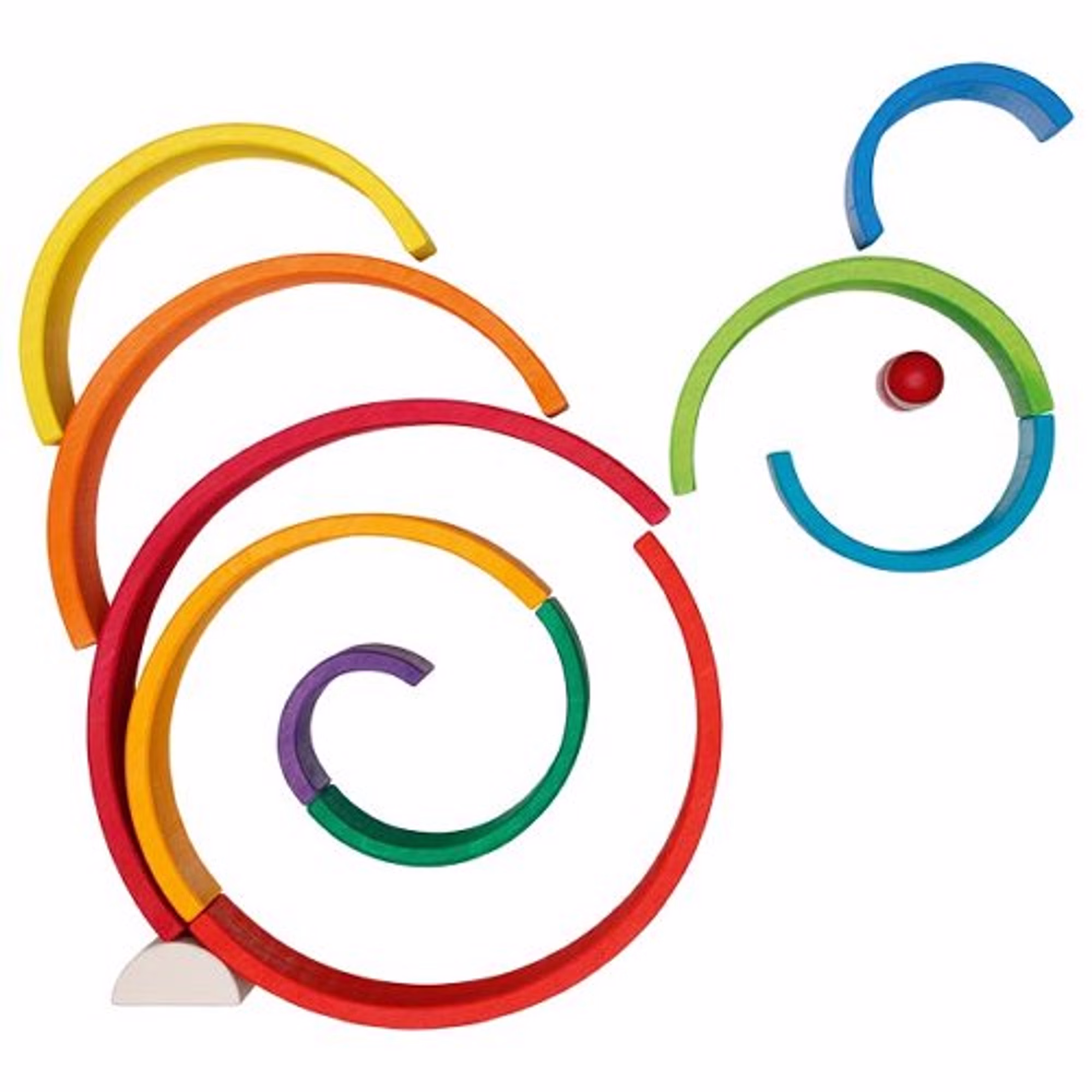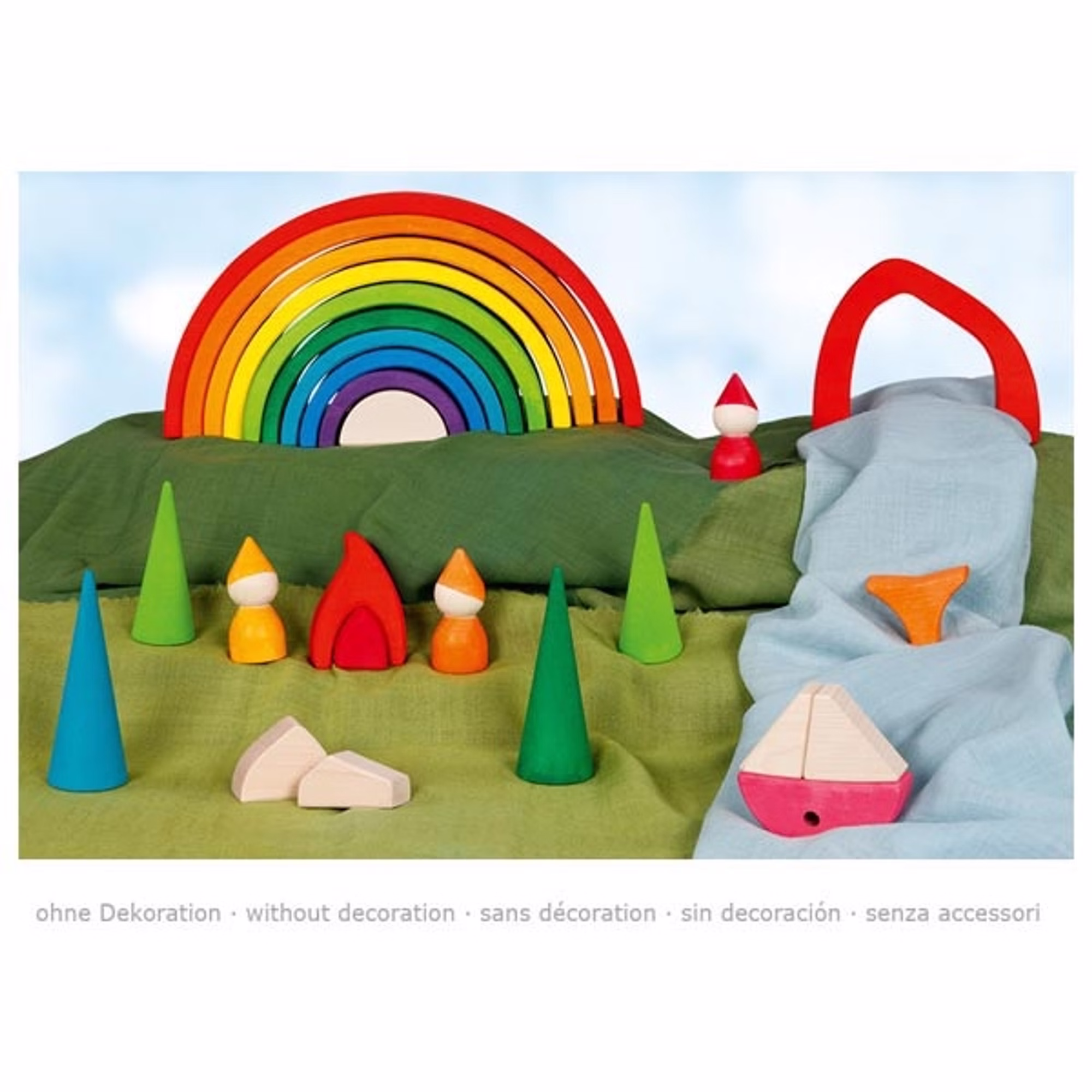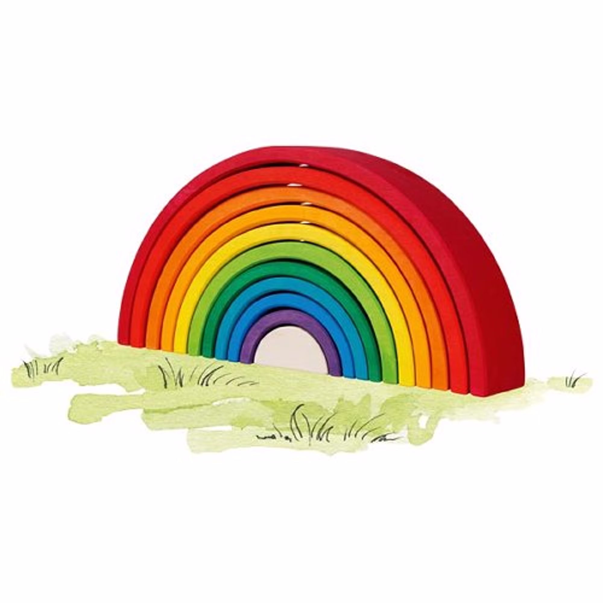 Dieser fröhliche Regenbogen aus Ahornholz lässt sich stapeln und sortieren, während spielerisch Größen, Reihenfolgen und Farben gelernt werden. Dem Erbauen von zauberhaften Welten im offenen Spiel sind somit keine Grenzen gesetzt - einfach ein Klassiker unter den Holzspielzeugen.