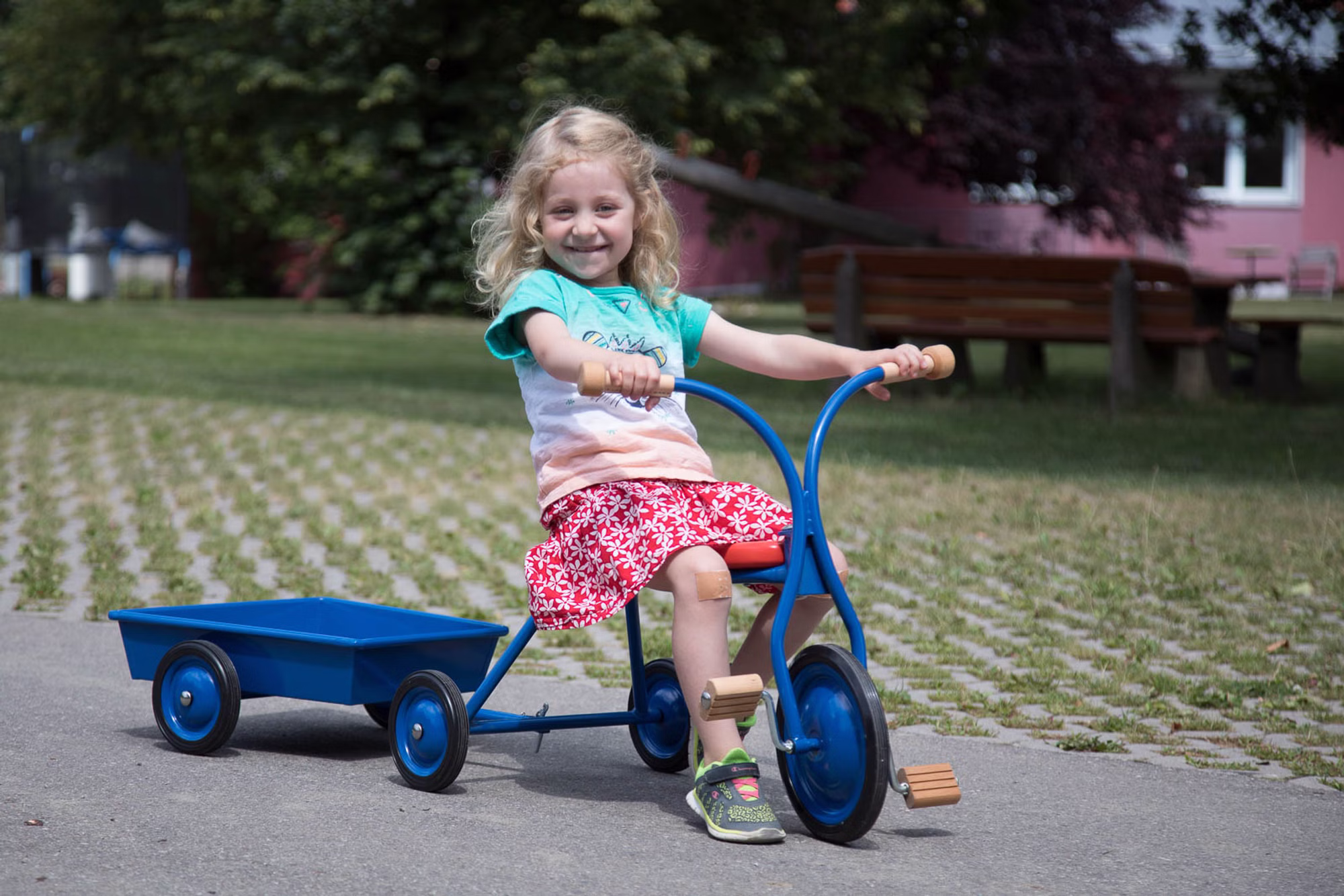 Einachsiger robuster Anhänger aus Metall. Die perfekte Ergänzung für das Dreirad und den Holländer.
