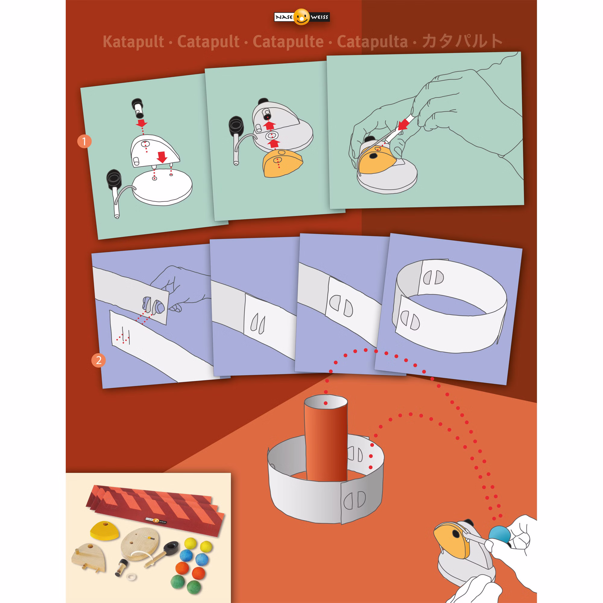 Mit dem Katapult lassen sich leichte Kugeln über abenteuerliche Kurse bis in Ziel schießen. Dabei sind Geschicklichkeit und Geduld gefragt. Und ein ganz neuer Blick auf die Welt - wo ist das nächste spannende Ziel? Werde Sieger bei deiner eigenen Katapult-Meisterschaft!