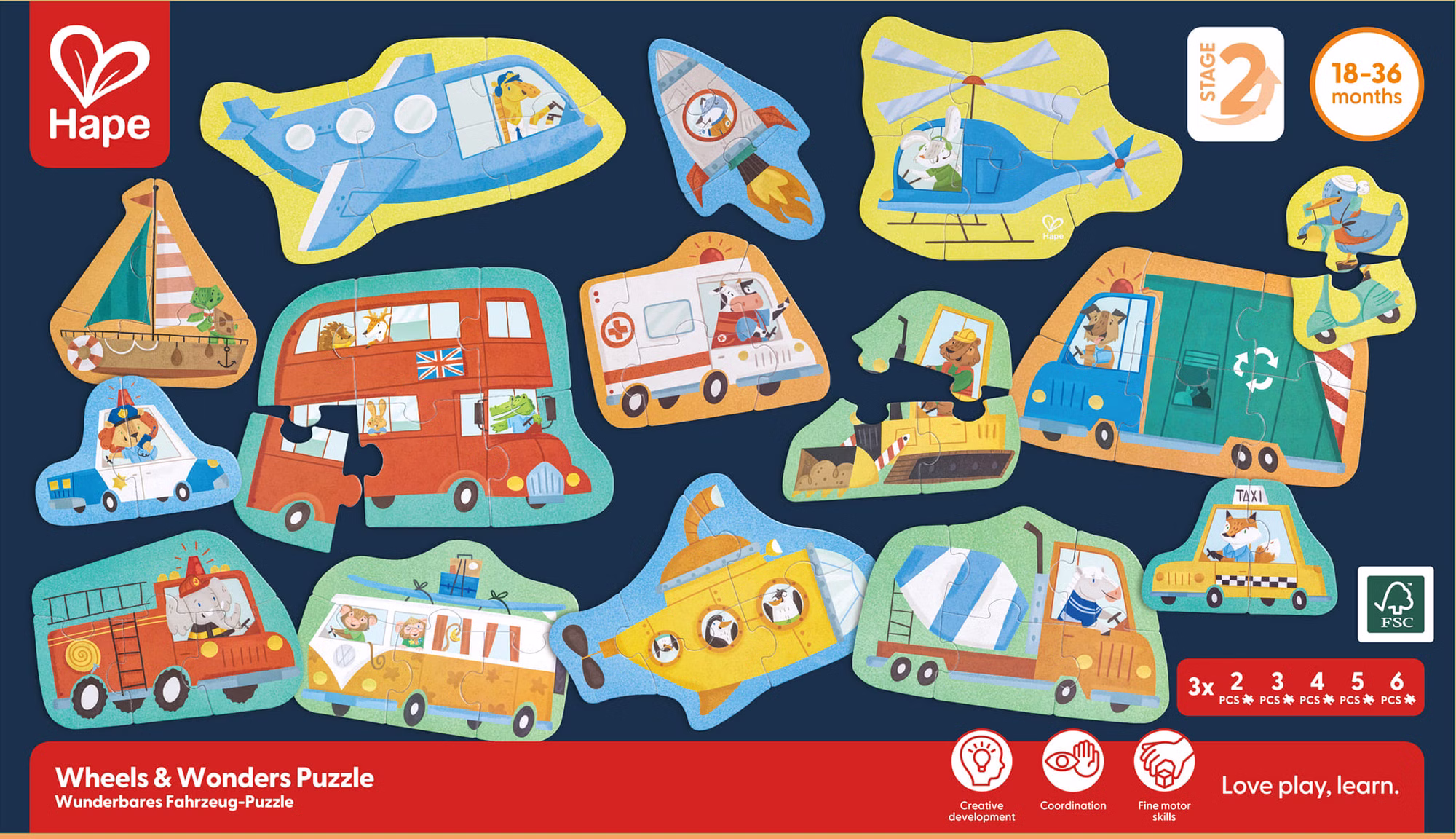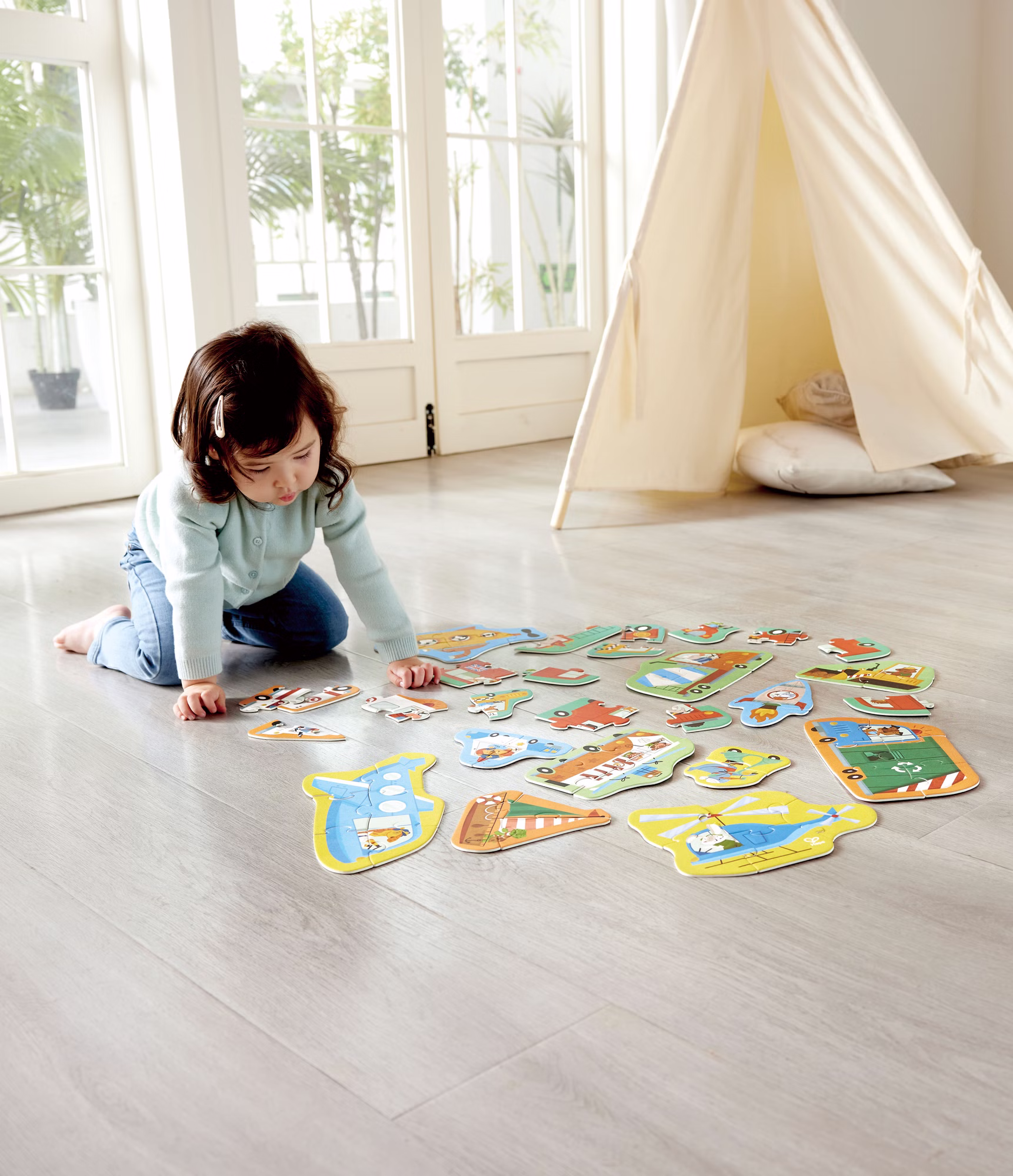 Das Set enthält 15 klassische Fahrzeugpuzzles mit max. 2-6 Teile pro Puzzle, darunter Autos, Hubschrauber, Flugzeuge, Boote und sogar ein U-Boot. Beim Zusammensetzen lernen Kinder, Probleme zu lösen, und erleben direkt, wie sich ihre Arbeit auszahlt. Das stärkt ihr Selbstvertrauen und bereitet sie auf künftige Herausforderungen vor.