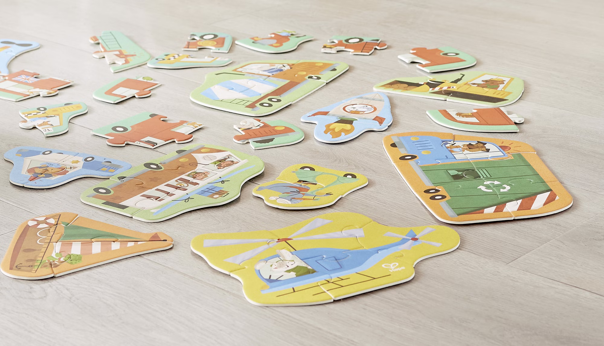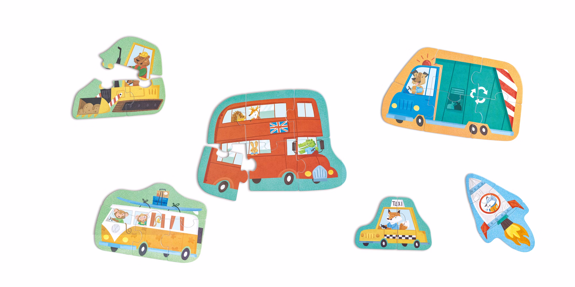 Während sie die Puzzles zusammensetzen und die verschiedenen Teile passend einfügen, entwickeln Kinder wichtige Fähigkeiten wie Mustererkennung, Hand-Auge-Koordination und Problemlösungsstrategien. Gleichzeitig lernen sie die unterschiedlichen Arten der Fortbewegung kennen und können eigene Geschichten zu den Fahrzeugen erfinden, wodurch auch die Sprach- und Kommunikationsfähigkeit gefördert wird.