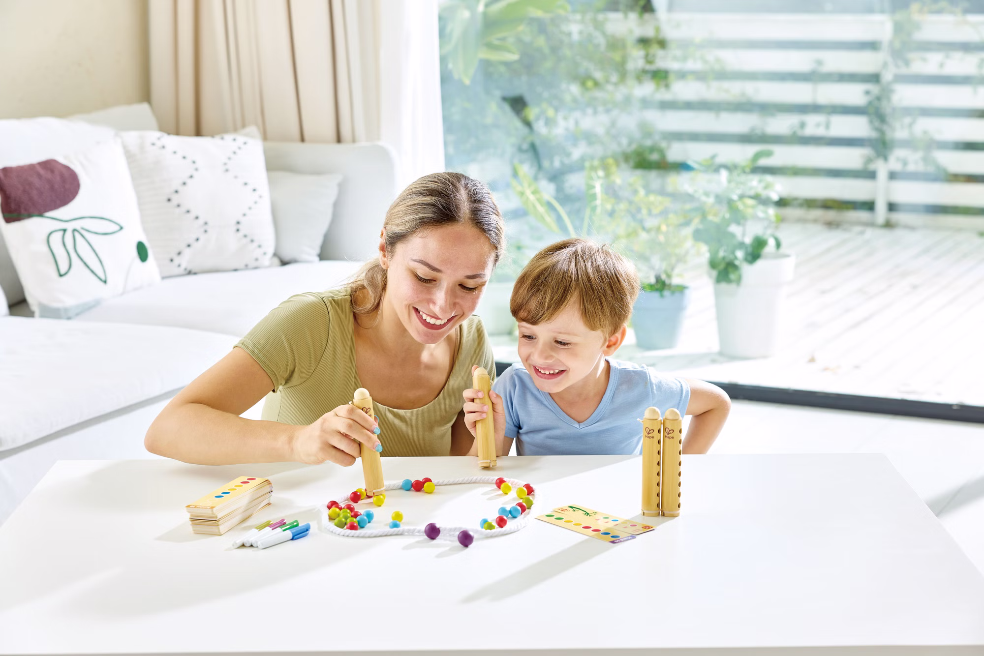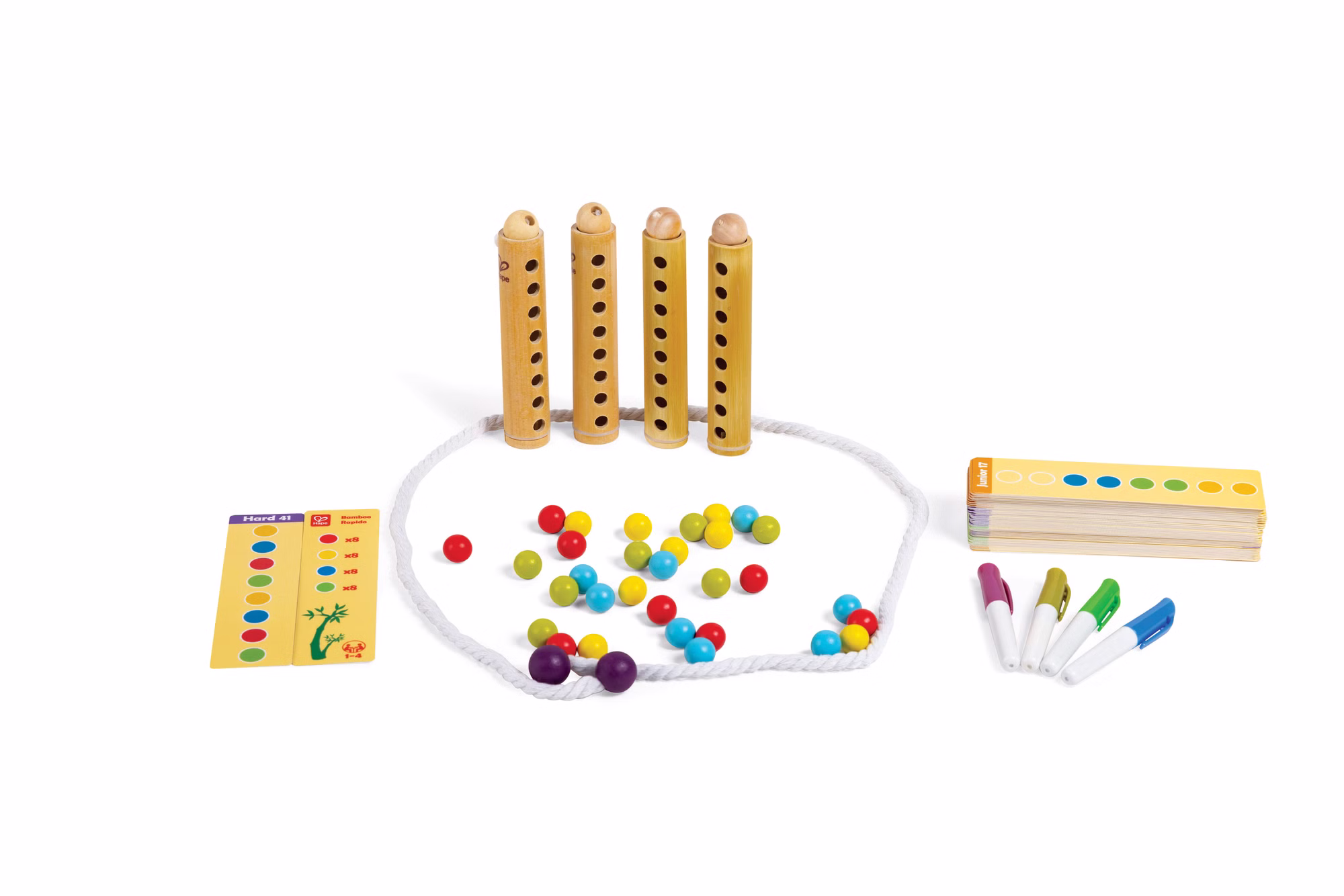 Mit diesem Spiel werden das Zählen und das logische Denken der Kinder gefördert, während sie die bunten Perlen sortieren und zuordnen. Indem sie sich Sequenzen einprägen und die passenden Perlen sammeln, trainieren die Kinder aktiv ihr Gedächtnis und ihre Merkfähigkeit. Durch die verschiedenen bunten Perlen wird zudem die Farberkennung und -assoziation der Kinder gefördert.