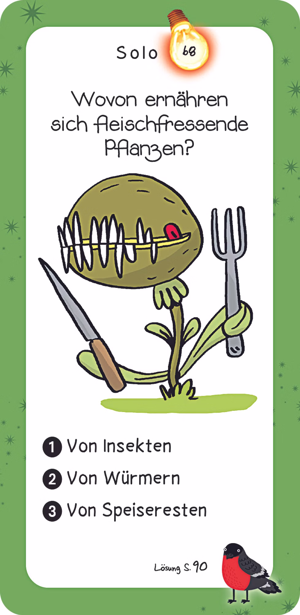Wovon ernähren sich eigentlich fleischfressende Pflanzen? Und tragen pupsende Kühe oder doch Autoabgase stärker zur Erderwärmung bei? Mit unserem Quiz der Erde zum Staunen und Lachen können kleine und große Quizmaster unter Beweis stellen, wie gut sie sich mit der großen blauen Kugel, die unser aller Zuhause ist, auskennen. In dem Quiz-Spiel findet sich alles, was Kinder über den blauen Planeten wissen wollen - über seine Meere, seine Kontinente, über Tiere, Pflanzen und seine Bewohner. Und dazu gibt es natürlich jede Menge unglaubliche Fakten, interessantes Angeberwissen und verrückte Geschichten. Die liebevoll gestalteten Illustrationen geben zudem einen spannenden Einblick in unsere Erde.
