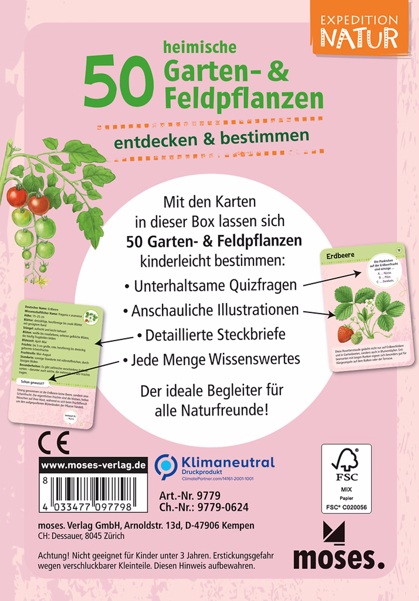 Das Quiz „50 heimische Garten- & Feldpflanzen“ lädt dazu ein, die Vielfalt der heimischen Pflanzenwelt spielerisch zu entdecken. Mit anschaulichen Illustrationen, spannenden Quizfragen und informativen Steckbriefen lernen Kinder und Erwachsene, Bäume, Kräuter, Obst- und Gemüsepflanzen sicher zu erkennen.