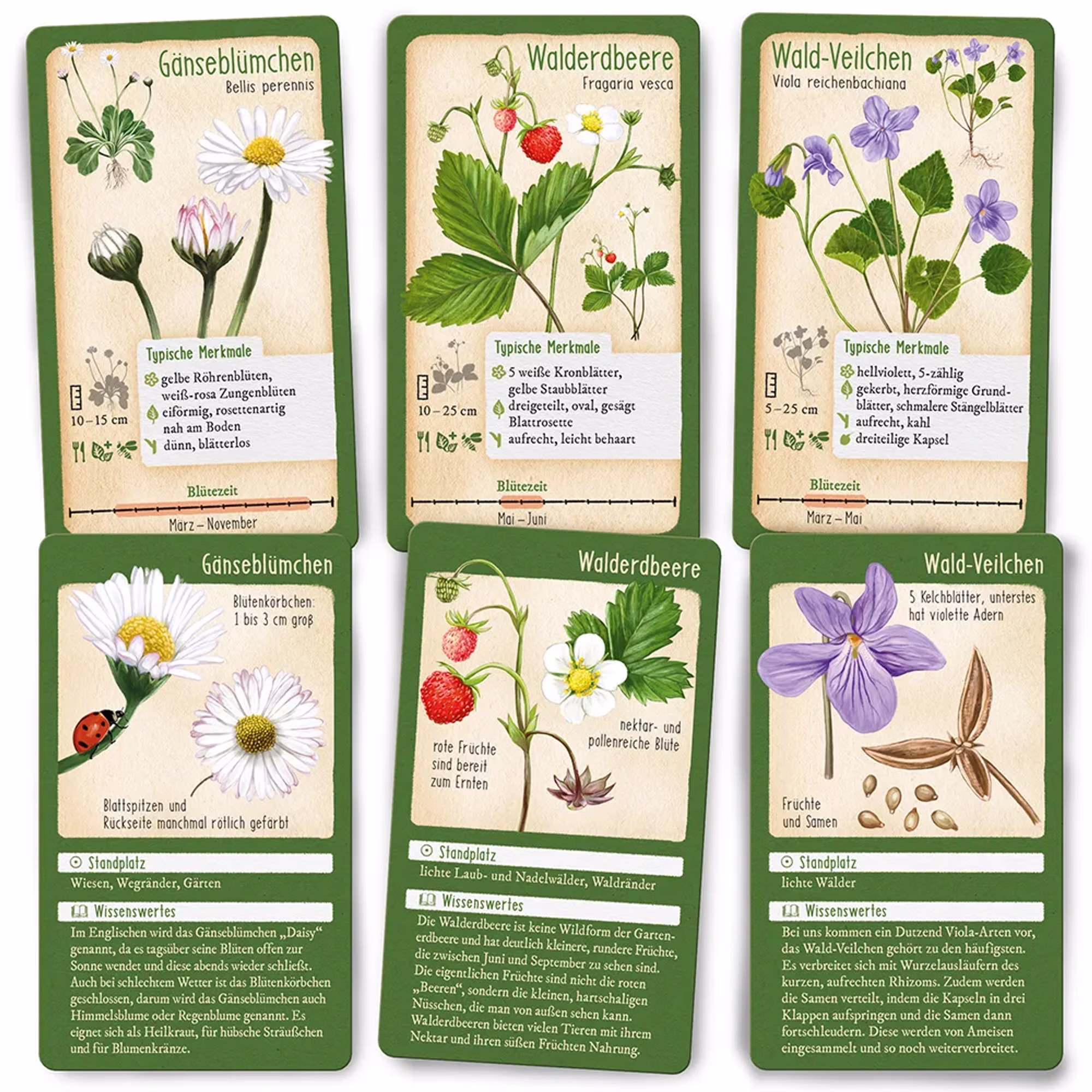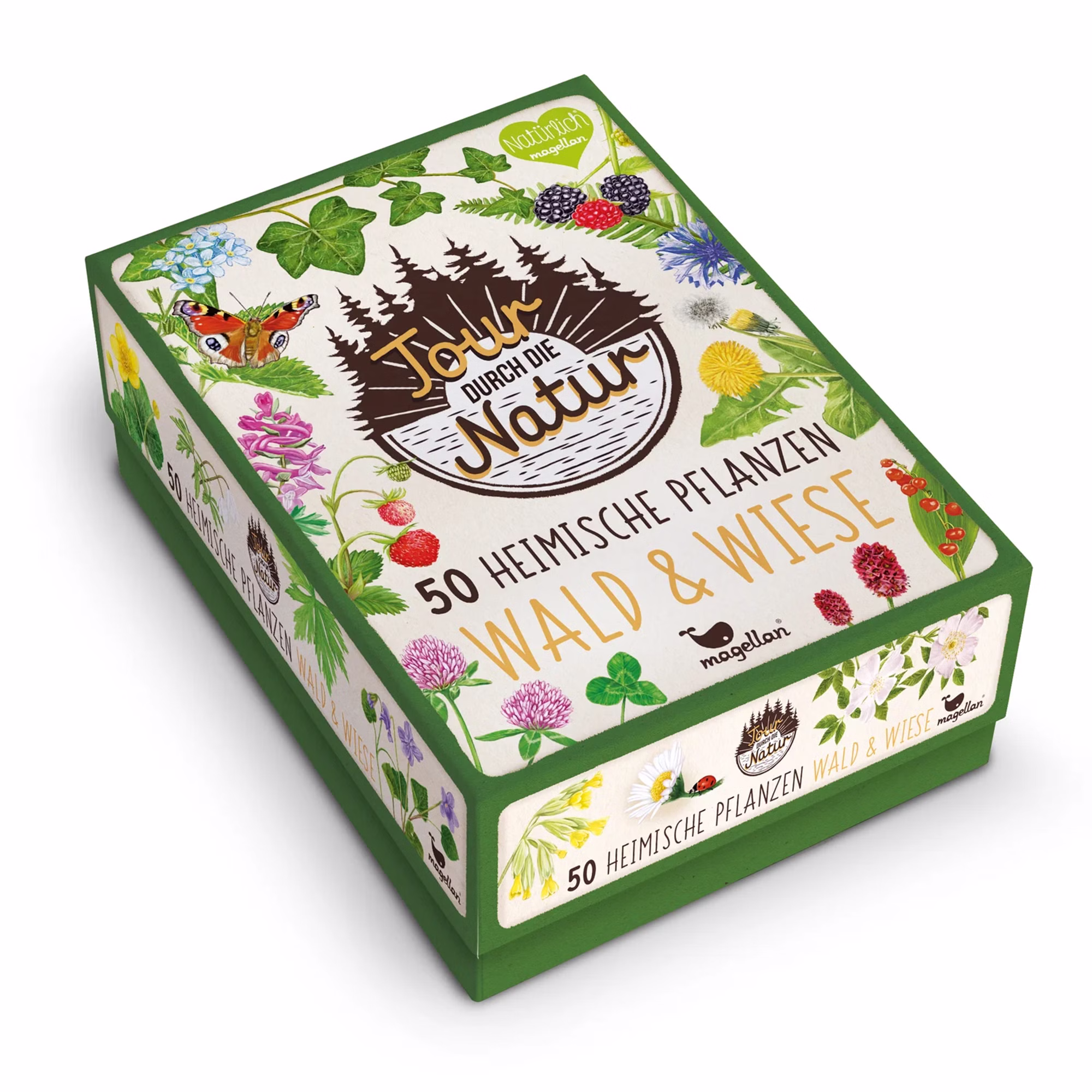 Kompaktes Wissen für unterwegs und als Geschenk für kleine und große Naturforscher Woran erkennt man den Bärlauch? Und wo findet man Walderdbeeren? Spielerisch die Natur entdecken und erleben – dafür steht diese Naturkarten-Reihe. Mit zahlreichen Sachinformationen und farbenfrohen, detailreichen Illustrationen ist sie der perfekte Einstieg, um spielerisch erstes Sachwissen über unsere heimischen Wald- und Wiesenpflanzen zu erlernen. Im praktischen Mitnahmeformat sind die Karten ein idealer Begleiter für Erkundungstouren durch die Natur, durch unsere heimischen Wiesen und Wälder. Wer schon alle Wald- und Wiesenpflanzen kennt, kann mit den weiteren Tour durch die Natur-Kartensets "50 unserer heimischen Bäume" und "50 heimische Singvögel" erkunden.