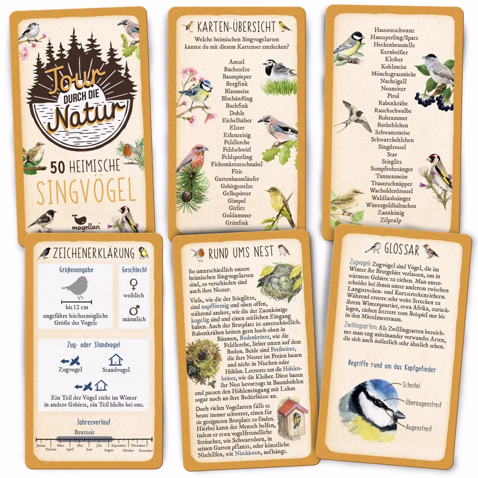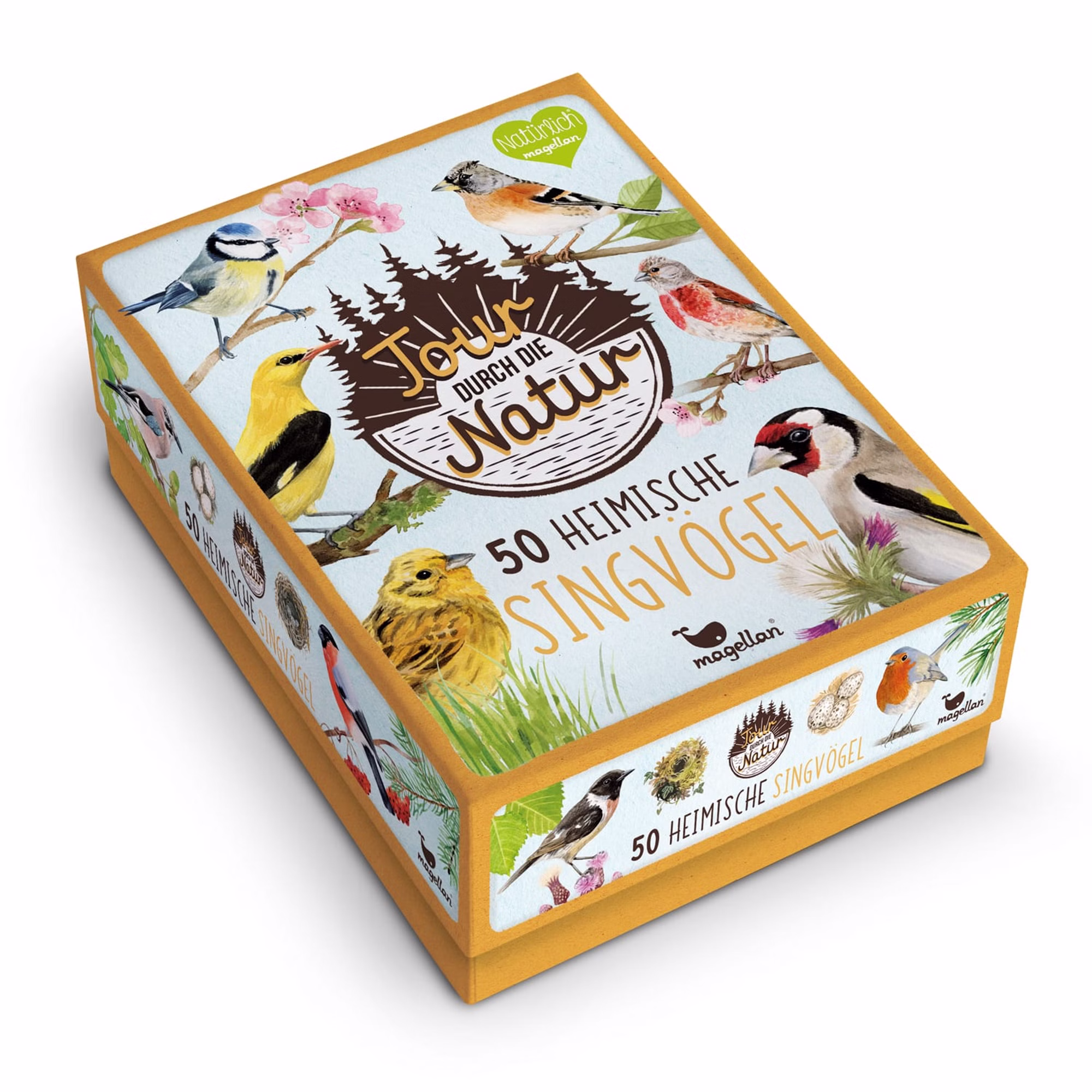 Die Natur entdecken und erleben – das verspricht das Singvogel-Set der neuen Naturkarten-Reihe. Mit zahlreichen Sachinformationen und wunderschönen, detailreichen Illustrationen ist es der perfekte Einstieg um spielerisch erstes Sachwissen über unsere heimischen Vögel zu erlernen. Im praktischen Mitnahmeformat sind die Karten ein idealer Begleiter für Erkundungstouren durch die Natur oder auch den eigenen Garten.