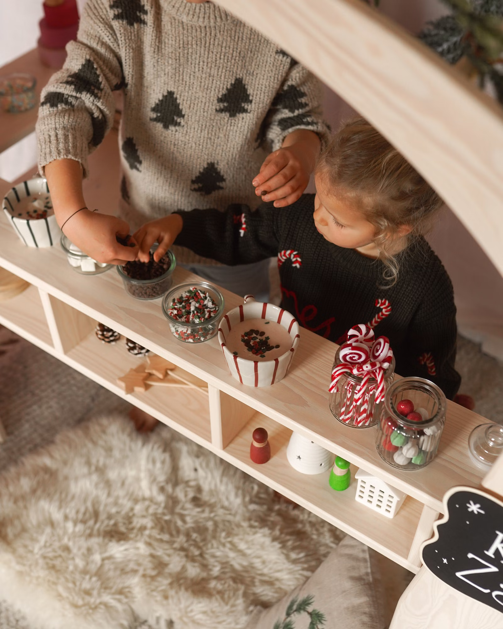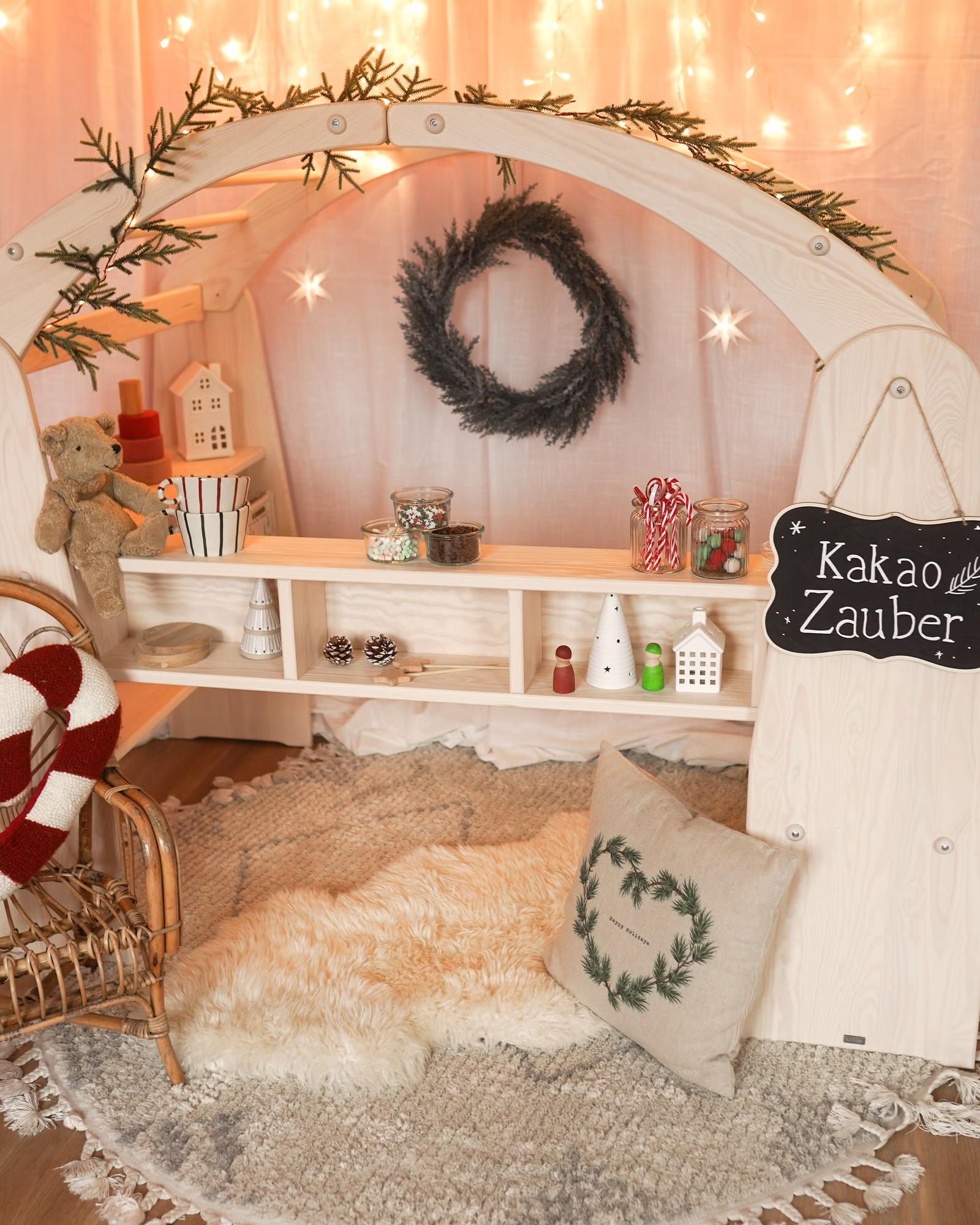 Dabei ist Anna nicht nur ein Ort für kreatives Spielen, sondern auch eine clevere Lösung zur Aufbewahrung und Raumgestaltung. Auf den großzügigen Ablageflächen der Spielregale können Ihre Kinder ihre Schätze, Spielsachen und Bücher ordentlich verstauen. Als Raumteiler verleiht Anna dem Zimmer eine dekorative Note und schafft gleichzeitig eine gemütliche Atmosphäre. Ein nachhaltiges Möbelstück, das Ihre Kinder durch ihre gesamte Kindheit begleitet.