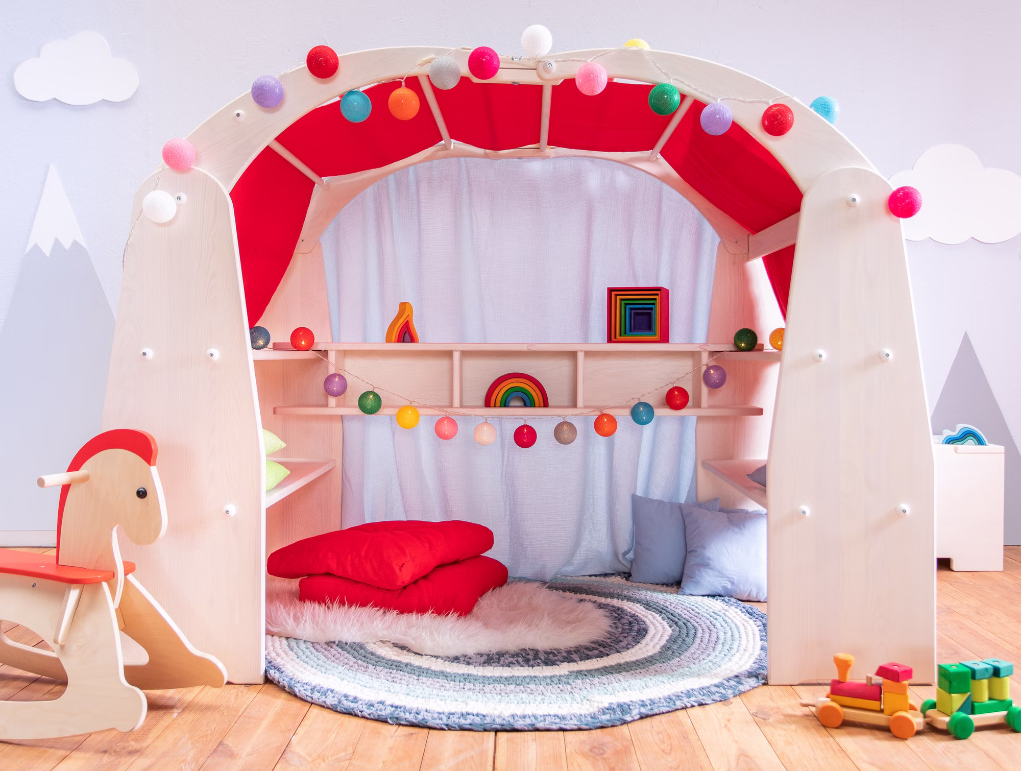 Dabei ist Anna nicht nur ein Ort für kreatives Spielen, sondern auch eine clevere Lösung zur Aufbewahrung und Raumgestaltung. Auf den großzügigen Ablageflächen der Spielregale können Ihre Kinder ihre Schätze, Spielsachen und Bücher ordentlich verstauen. Als Raumteiler verleiht Anna dem Zimmer eine dekorative Note und schafft gleichzeitig eine gemütliche Atmosphäre. Ein nachhaltiges Möbelstück, das Ihre Kinder durch ihre gesamte Kindheit begleitet.
