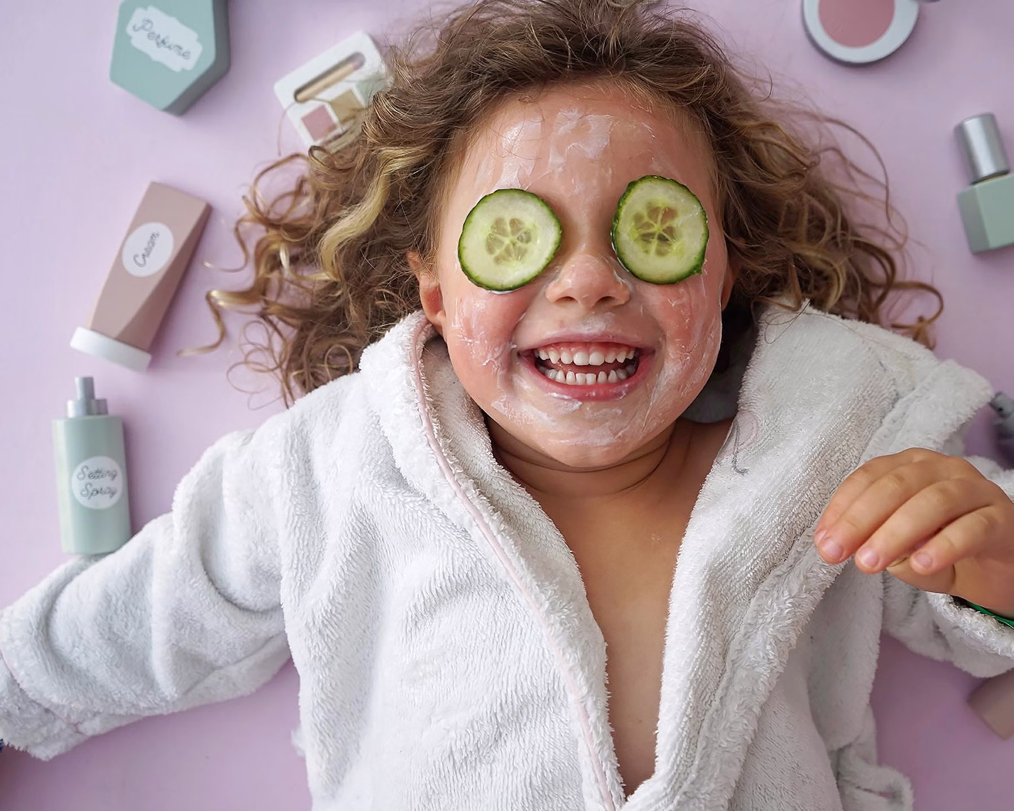 Dieser umfangreiche Kosmetiksalon für kleine Beauty-Fans bietet stundenlangen Spielspaß. Eröffne deinen eigenen luxuriösen Wellnesssalon und verwöhne deine Kunden mit Gesichtsbehandlungen und Party-Make-up. Zunächst gibt es für entspannte Augen Gurkenscheiben und eine Gesichtscreme, bevor du mit dem Make-up beginnst. Dann trägst du Foundation und Rouge auf, dazu den passenden Lippenstift und Lidschatten. Zum Abschluss trägst du noch Mascara und Kajal auf den Augen auf – und der Look ist perfekt. Jetzt kannst du dich um die Haare kümmern. Style sie mit Föhn, Glätteisen oder Lockenstab und fixiere die tolle Frisur am Ende mit Haarspray. Zum Schluss darf ein exklusives Parfüm nicht fehlen. Nach deiner Behandlung kann sich dein Kunde im Spiegel von dem tollen Resultat überzeugen. Alle Accessoires sind aus Holz, und der Kosmetiksalon hat Räder und einen Griff, damit du ihn leicht bewegen kannst. Auf den beiden Regalen finden alle 26 Produkte Platz. Die Details und Farben des Inhalts können variieren.