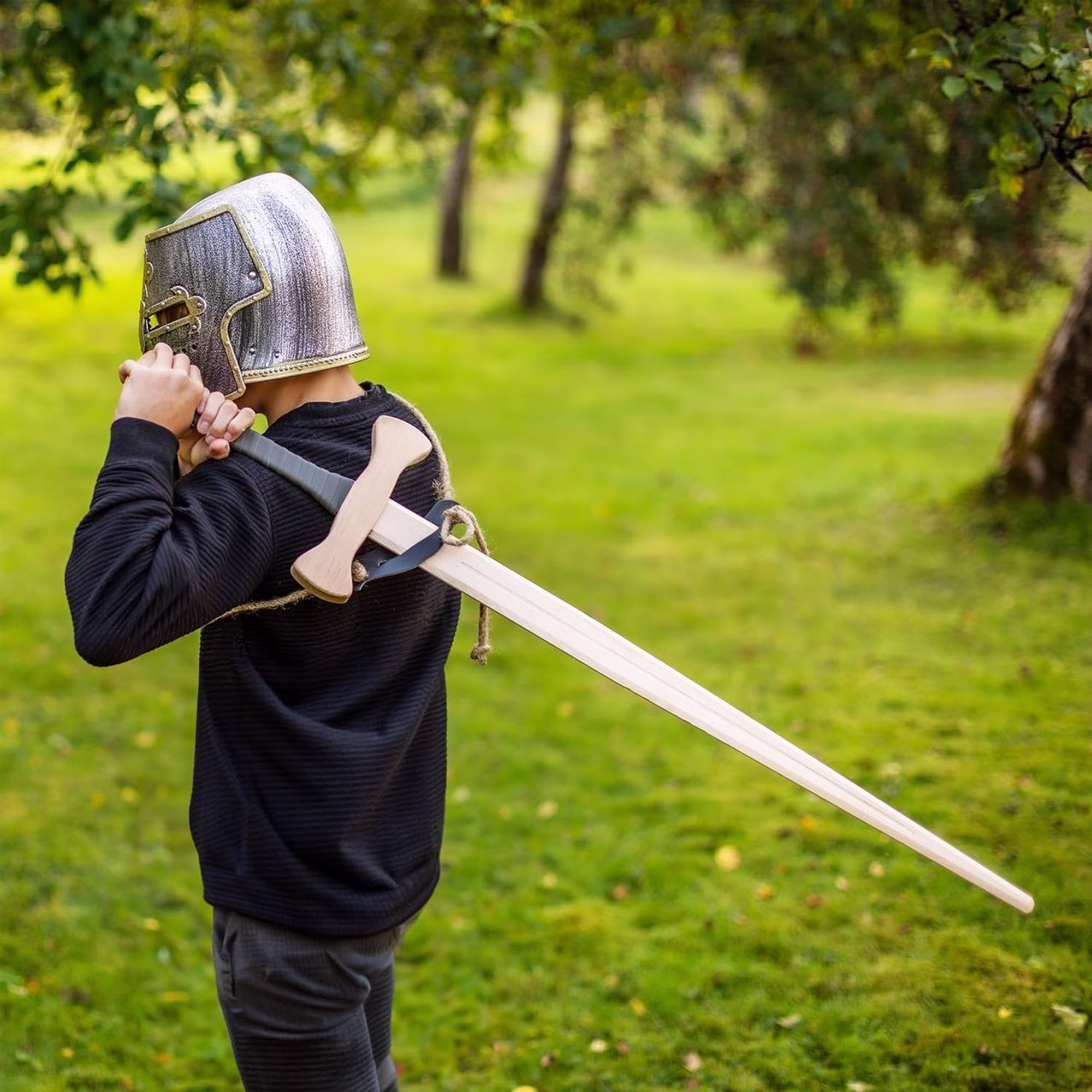 Der Schwertgürtel besteht aus robustem Leder und ist mit einem Hanfseil versehen. Dank der flexiblen Einstellmöglichkeit passt er sich optimal an und sorgt für einen sicheren Halt beim Abenteuer im Kinderzimmer oder auf der Ritterburg.