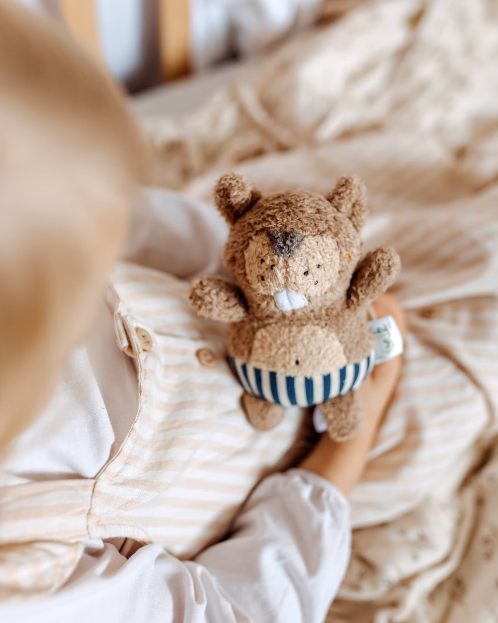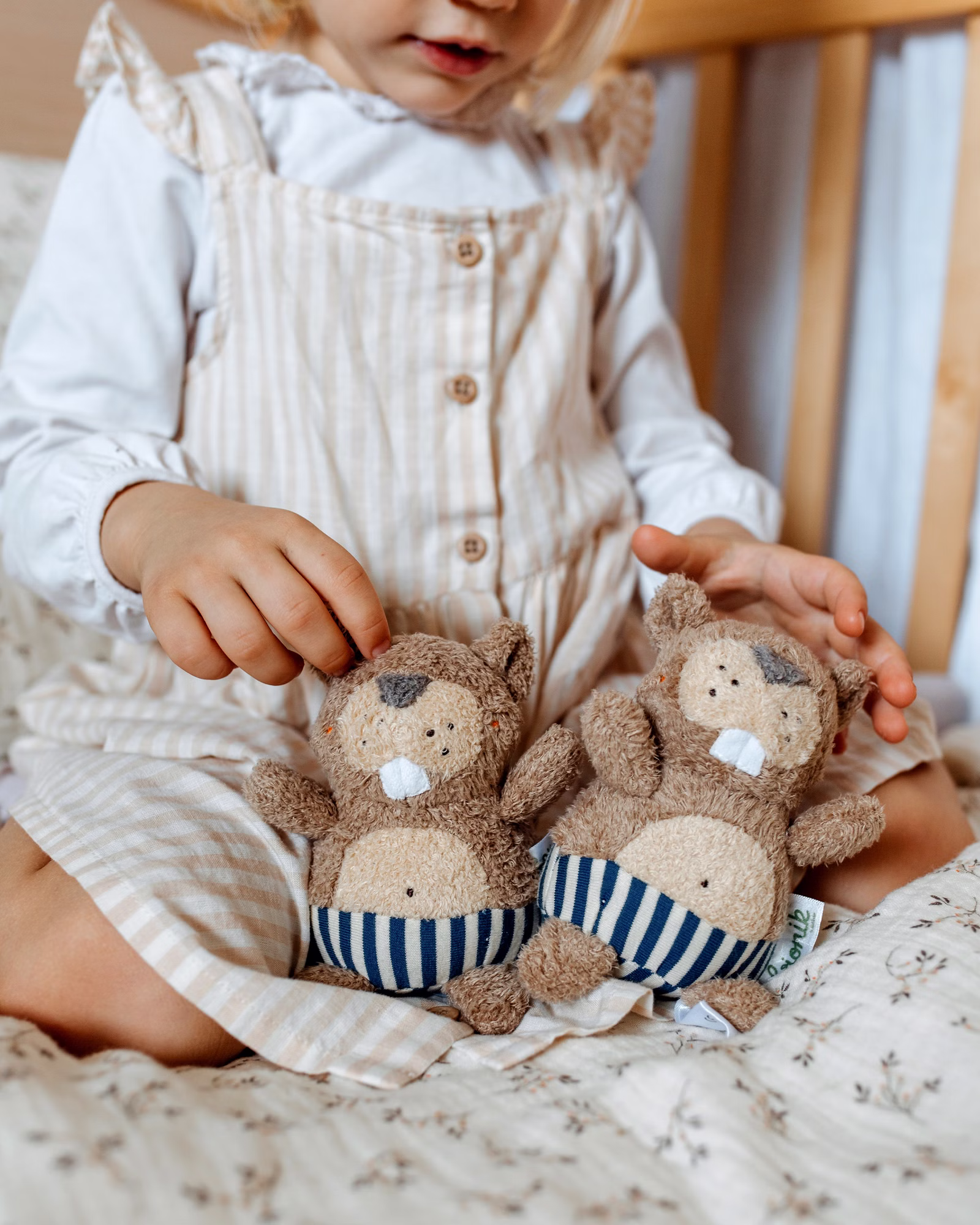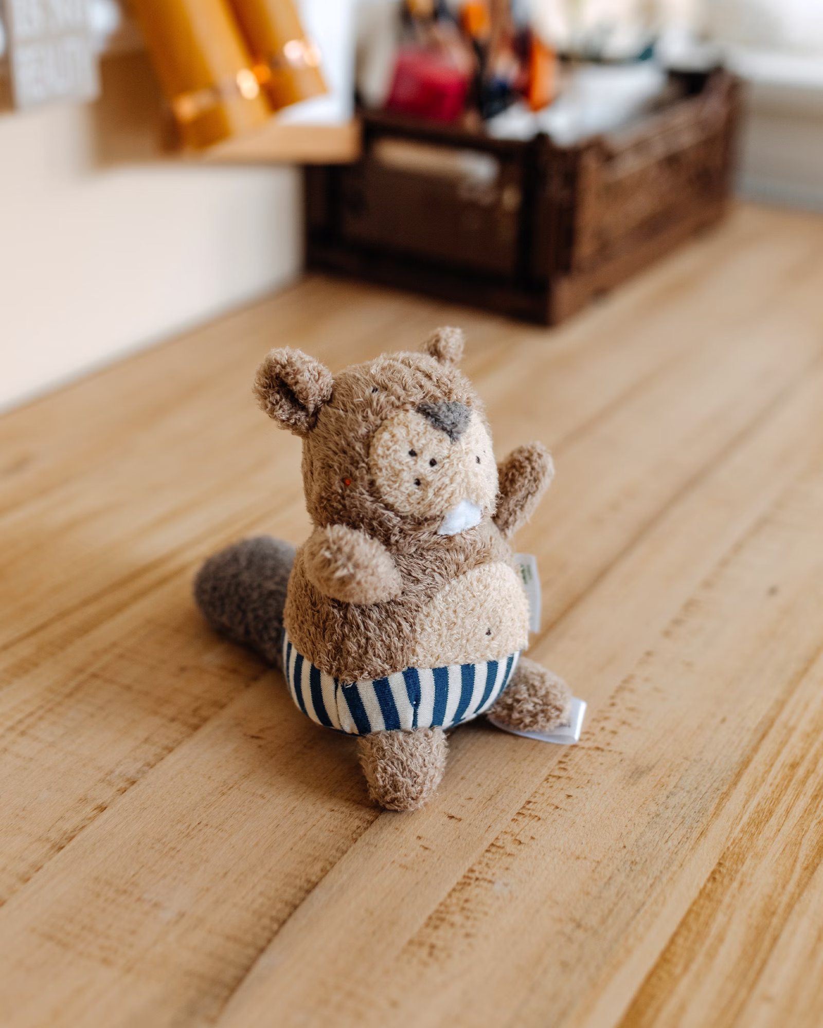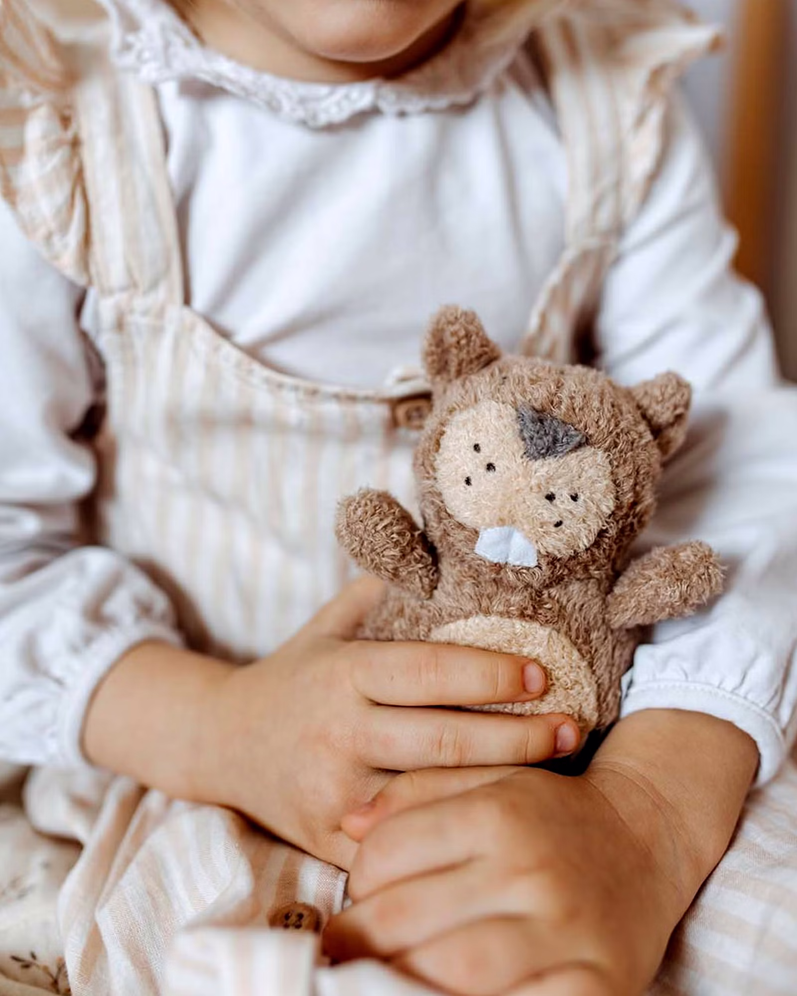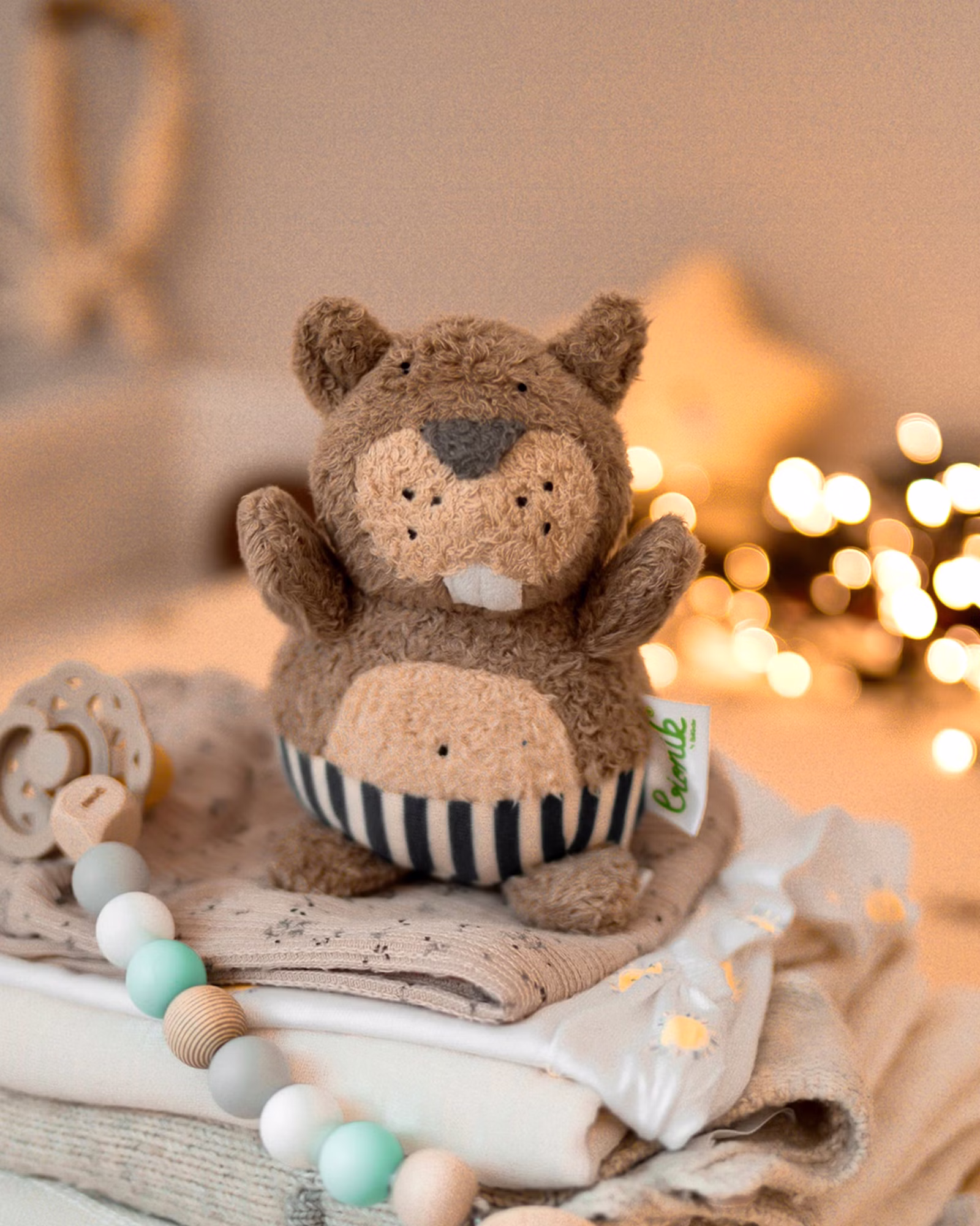 Unser Biber Brunolino ist dank seiner großen Zähne ein fleißiger Baumeister und verbringt seine Freizeit gerne mit dem Bauen von Biberburgen und Staudämmen. Mit seinem weichen Biberschwanz und kuscheligem Plüschfell wird aus dem wilden Nagetier ein zahmes Schmusetier, das gerne bei jedem kleinen und großen Abenteuer dabei ist. Seinen anderen Artgenossen zuliebe ist er vegan und setzt auf keinerlei tierische Bestandteile.