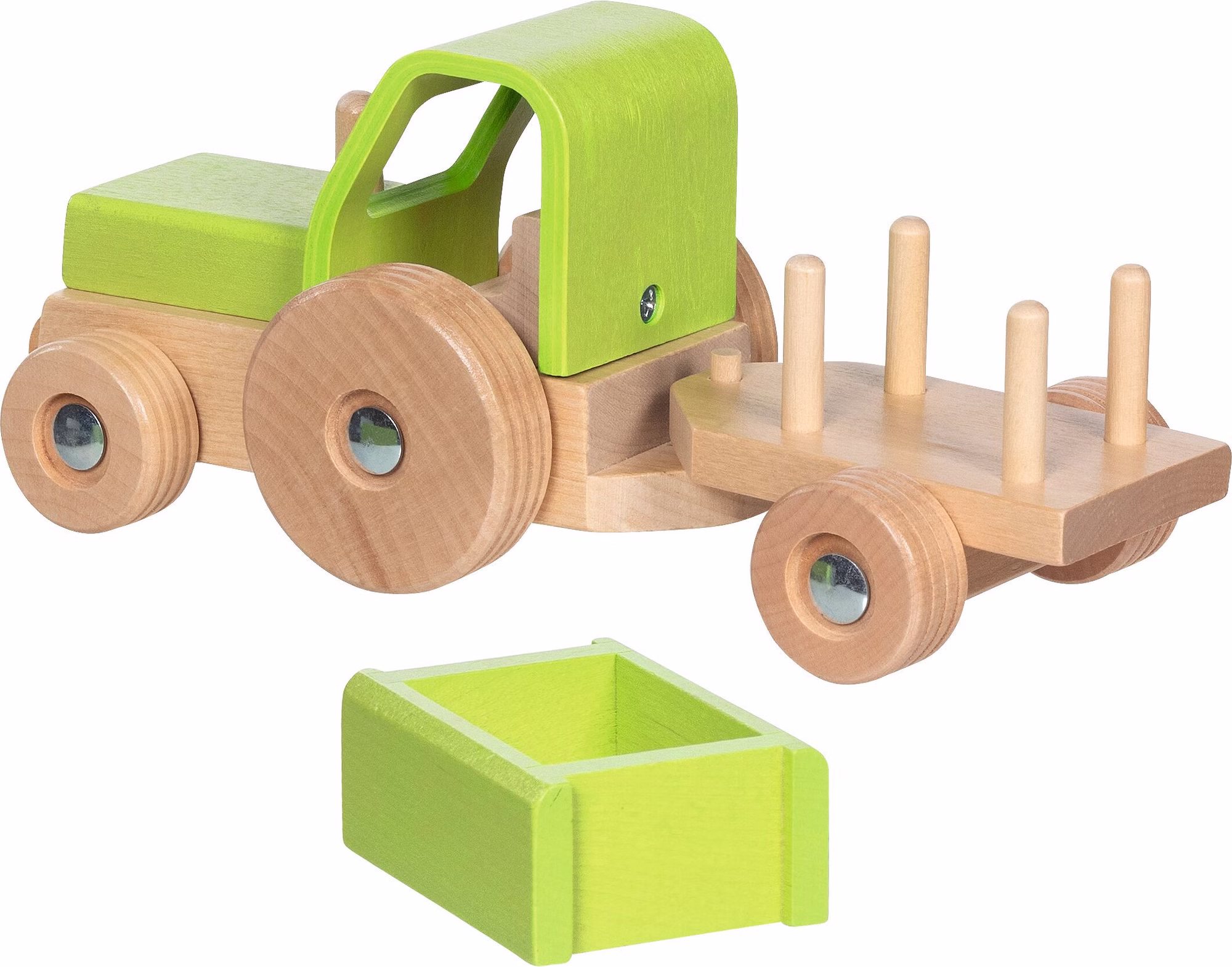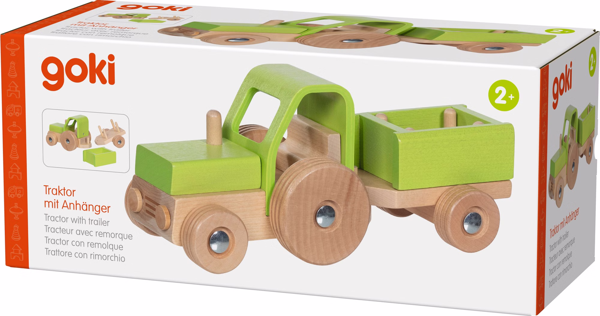 Das erste Holzfahrzeug soll für Kinder etwas ganz Besonderes sein. Dieses Traktorgespann mit Anhänger überzeugt durch eine kindgerechte Gestaltung und altersgerechte Funktionen. Die leichtgängigen Räder und sanft abgerundeten Holzkanten sind ein angenehmes Spielerlebnis. Das natürliche Material, Holz fühlt sich warm an und lädt dazu ein, die Welt mit allen Sinnen zu entdecken.