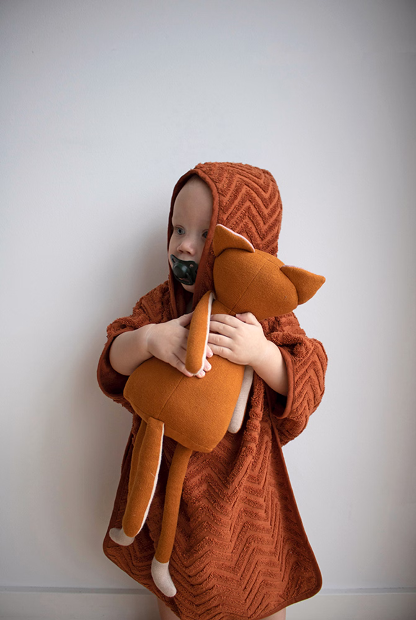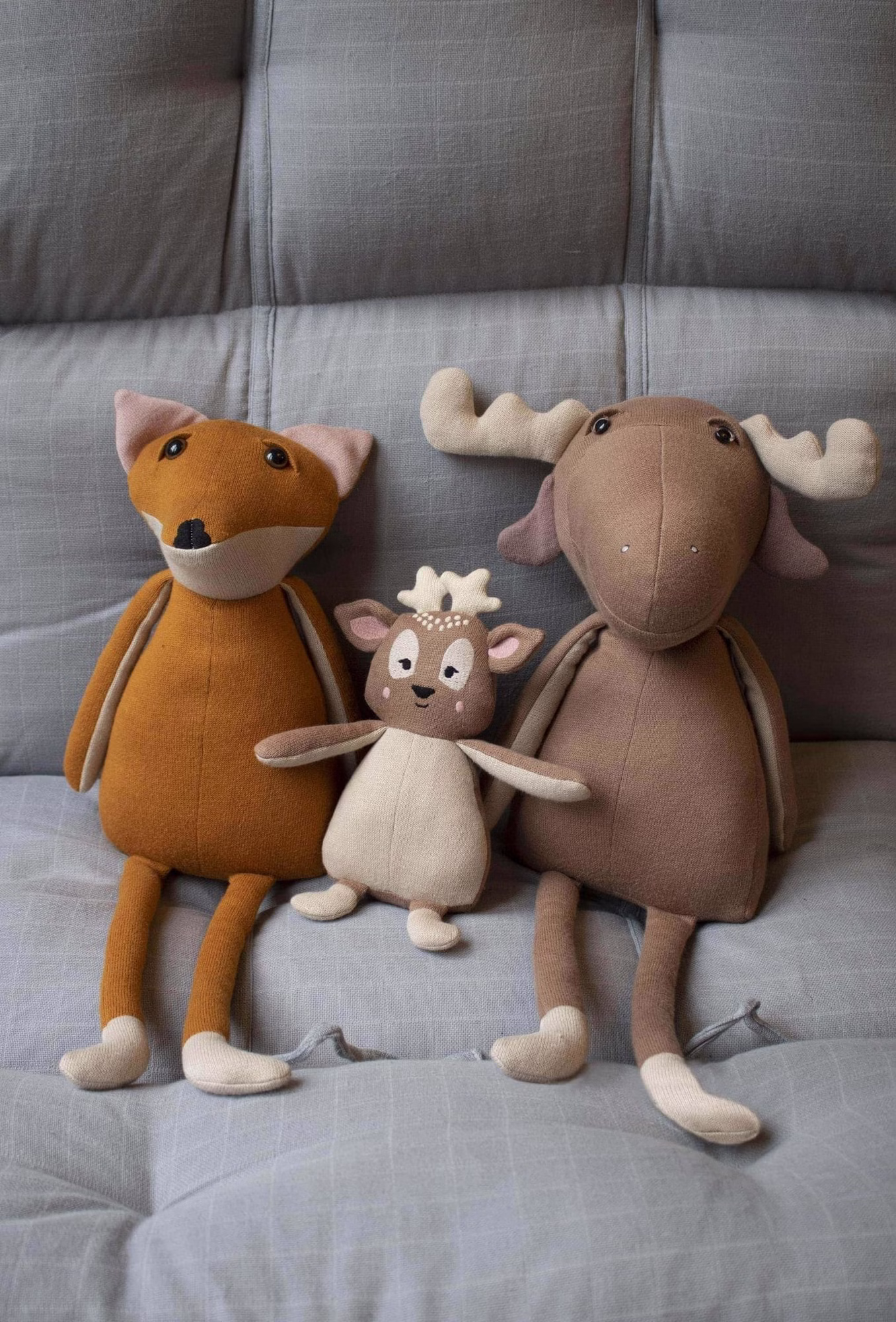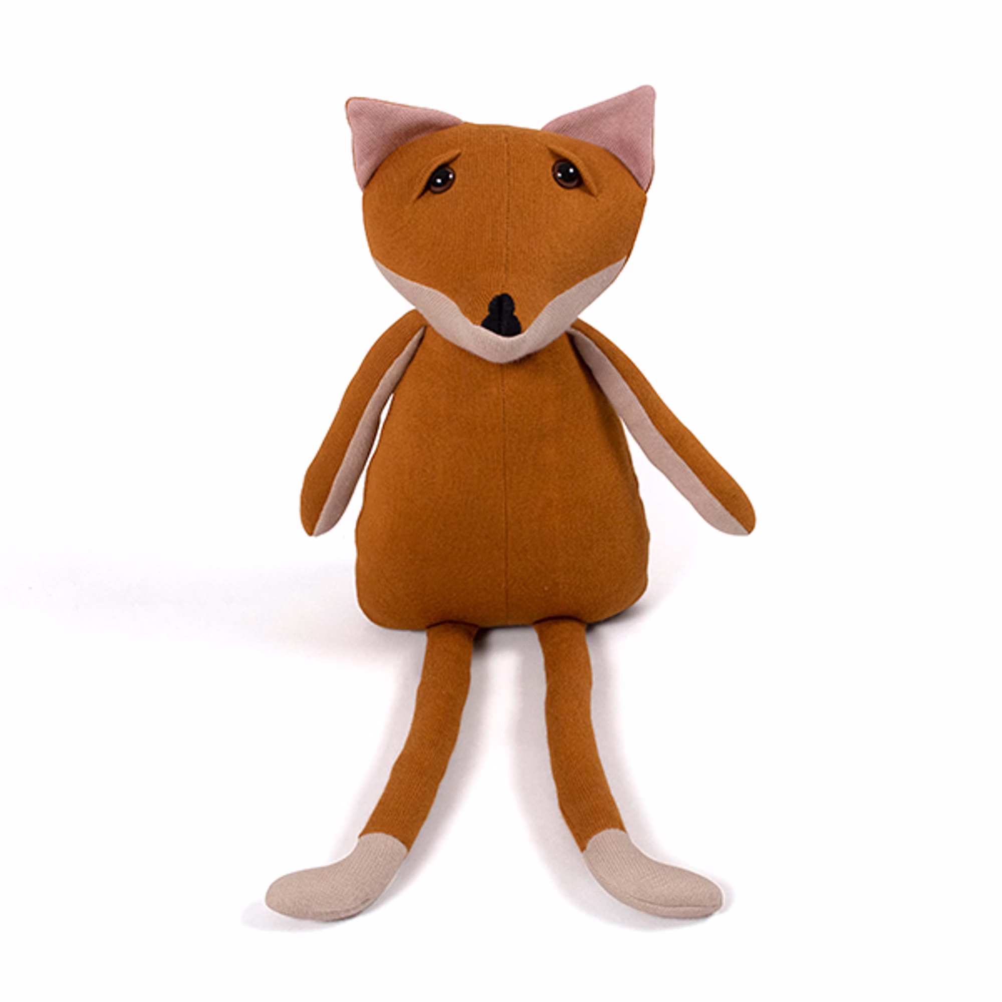 Ein niedliches Fuchs Kuscheltier mit Inspiration aus der nordischen Natur, gestrickt aus weicher 100% Bio-Baumwolle mit feiner Textur und freundlichen Augen.