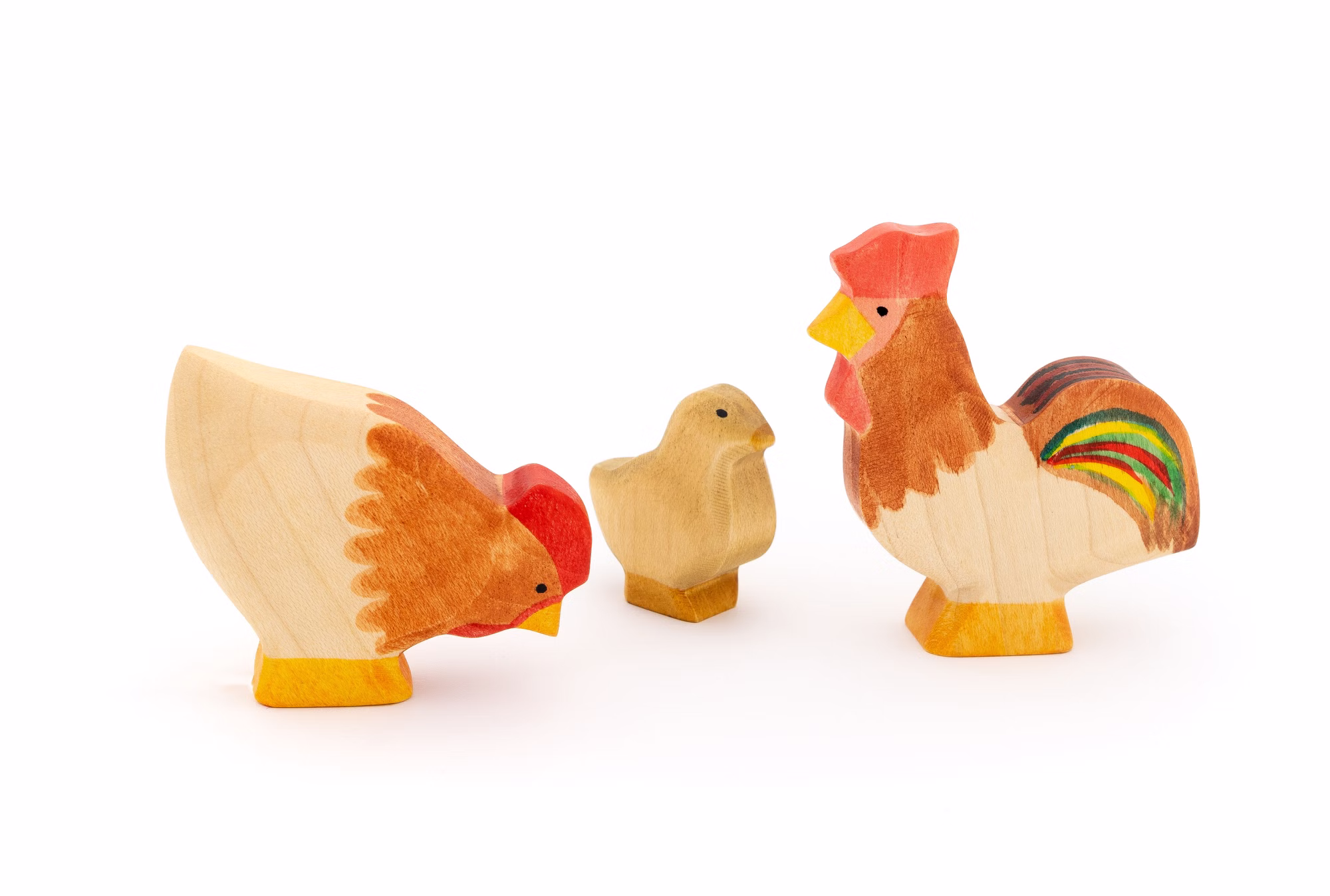 Das Leben auf dem Bauernhof ist für viele Kinder ein großes Thema. Und das zu Recht! Denn kein Ort vereint so viele pädagogische Lerneinheiten wie die Arbeit auf einem Bauernhof. Neben dem sozialen Kontakt steht hier die Wertschätzung des Lebens und das Miteinander von Mensch, Tier und Natur an erster Stelle. Es werden ausschließlich zertifizierte Hölzer höchster Qualität verwendet. Die Kanten werden abgerundet und in mehreren Arbeitsgängen feingeschliffen, so dass sie angenehm und weich in der Hand liegen. Am Ende werden sie mit Naturfarben bemalt und schließlich mit hochwertigem Öl poliert.