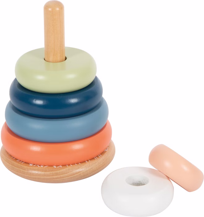 Stapel- und Steckspaß in arktischem Look! Dieser Stapelturm aus 100%-zertifiziertem Holz motiviert schon die Kleinsten dazu, die sechs verschiedenfarbigen Ringe der Größe nach zu sortieren und aufeinander zu stapeln. Dabei werden Motorik, Hand-Augen-Koordination und das Verständnis für Farben und Größen geschult. Zusätzliche Freude bereitet der abgerundete Boden, der den Stapelturm hin und her schaukeln lässt und damit die Geschicklichkeit der Kinder herausfordert. Für das Plus an Sicherheit sorgt ein beweglicher Pin. Dieser kindgerechte, in modernen und zugleich zarten Farben gestaltete Motorikklassiker aus robustem Holz garantiert langanhaltenden Spielspaß. Das handschmeichlerische Holz sorgt für eine angenehme Haptik. Damit kommt bei den Kleinsten so schnell keine Langeweile auf.