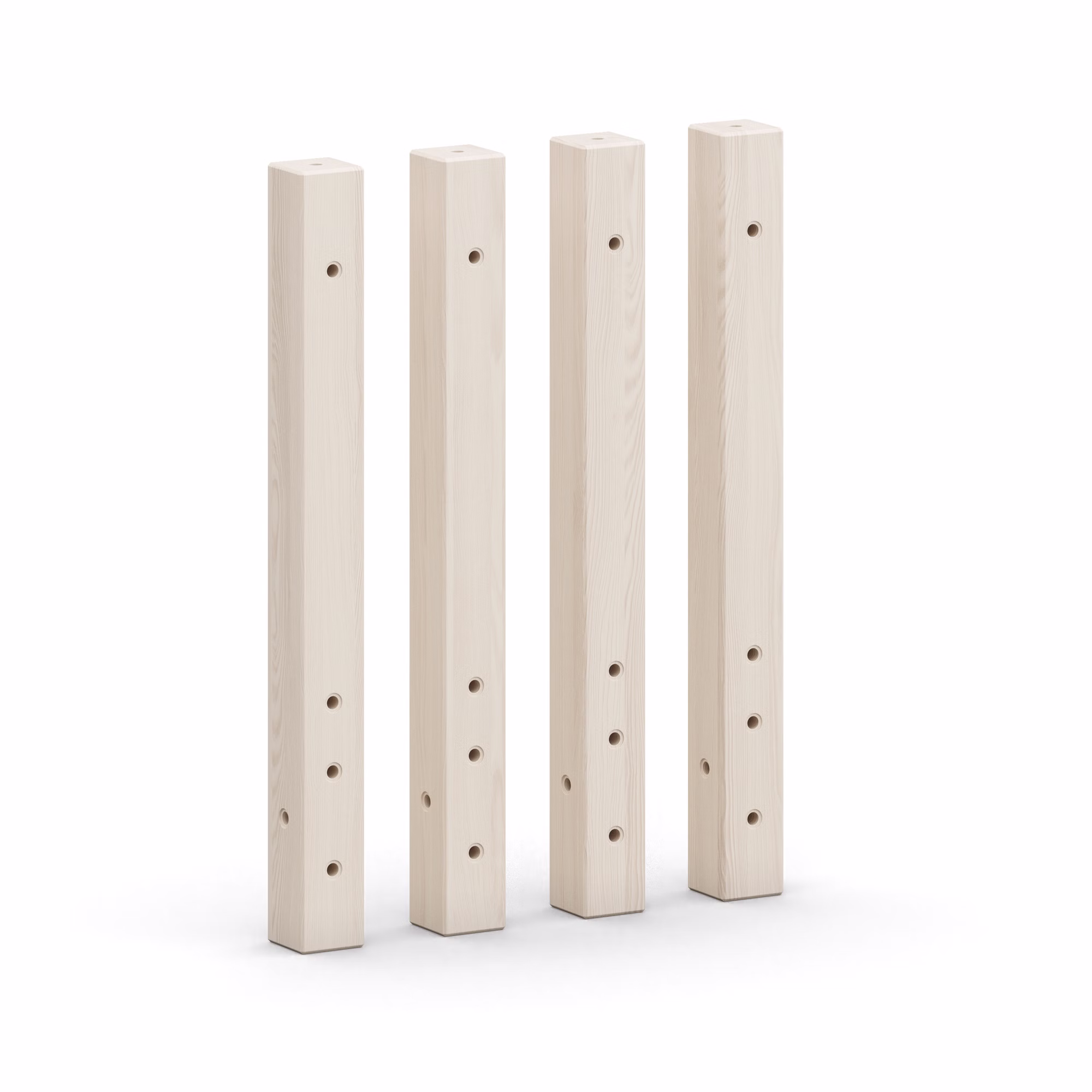 Mit diesen vier praktischen Pfosten wird das Frieda Kinderbett oder Hausbett im Handumdrehen in ein Bodenbett umgebaut.