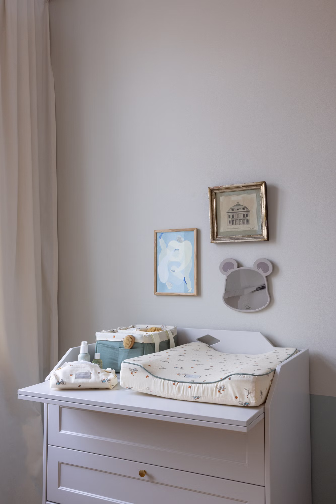Wickelkissen mit einer bequemen Form und hohen Kanten, die das Baby gut unterstützen. Das Kissen besteht aus kaltgepresstem Schaum und hat einen abnehmbaren und waschbaren Bezug. Das Kissen ist mit einer praktischen, schmutz- und wasserabweisenden Beschichtung versehen, und der Schaumstoff ist mit einem weichen Futterstoff überzogen, um das Entfernen und Aufbringen des Bezuges beim Waschen zu erleichtern.